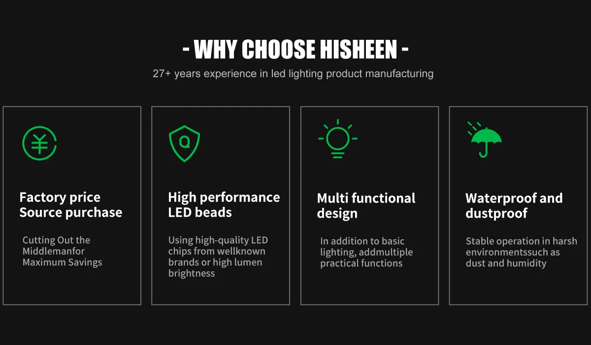 मुख्य उत्पादों: काम की रोशनी; कैंटर; स्पॉटलाइट; एल्यूमीनियम फ्लैशलाइट; हेडलैंप